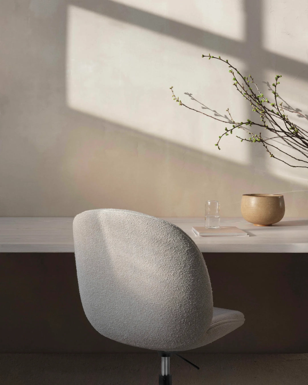 GamFratesi's Beetle Collectie voor GUBI, waar Italiaanse finesse en Deens design elkaar ontmoeten, biedt een stoel die eenvoudige vormen met persoonlijkheid verenigt. Door ambacht en technologie te combineren, ontstaat een comfortabele en expressieve stoel, geïnspireerd door de natuur.