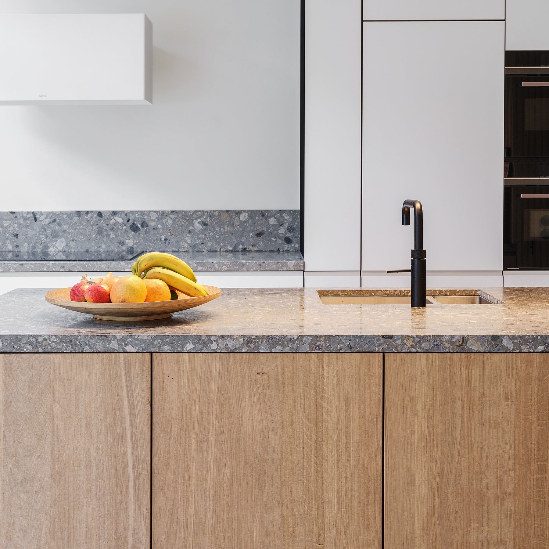 De deuren en ladefronten uit de Selekt-serie worden willekeurig uit gefineerde basispanelen gefreesd. Een doorlopende nerf is uitgesloten; elk front heeft een eigen tekening waarin rechte delen en vlammen elkaar speels afwisselen. Zo ontstaat een levendig geheel met natuurlijke variatie in kleur en structuur.