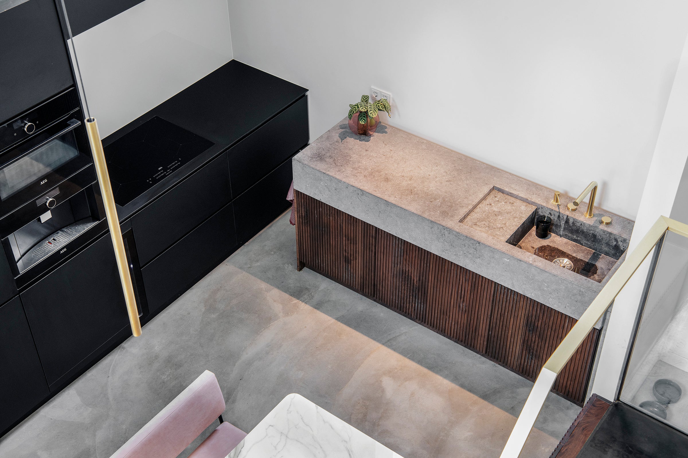 Verticaal als rugwand, spatwand of nisbekleding. En natuurlijk als werkblad voor het kookgedeelte of spoeldeel. Spoelbak, kookplaat en techniek is perfect verwerkt in dit tijdloze en boeiende materiaal.