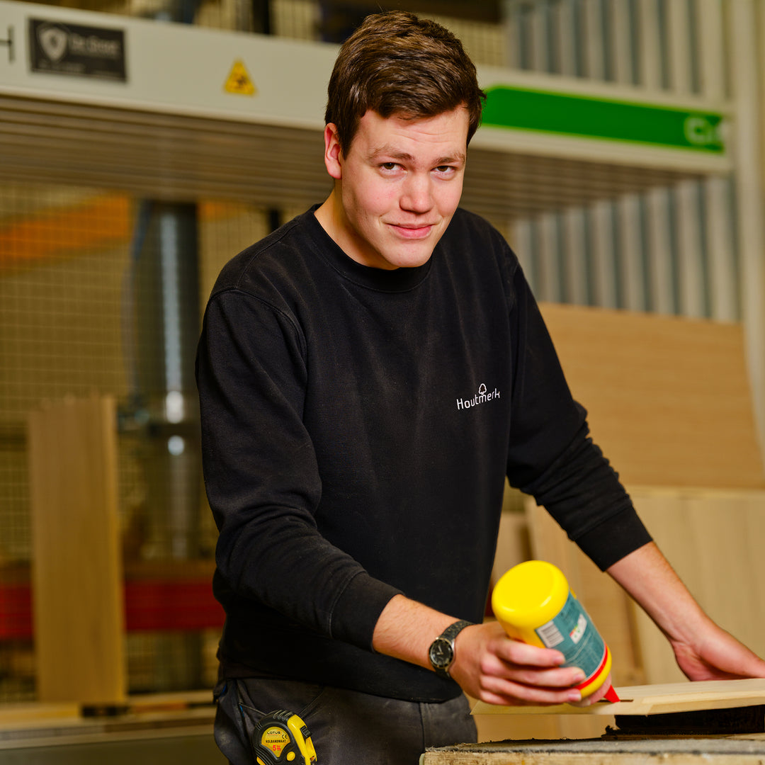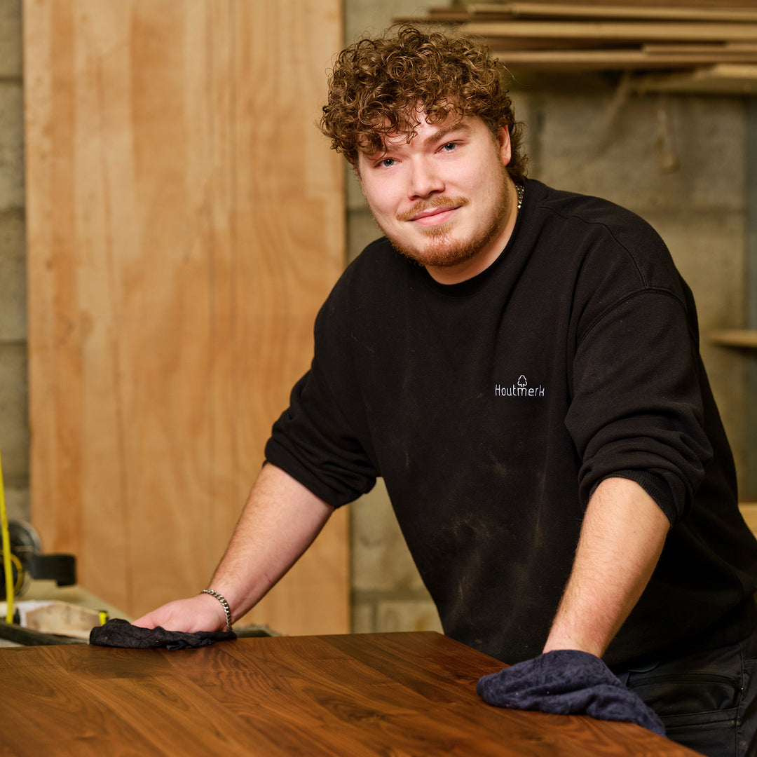 LEERLING MEUBELMAKER | Allround medewerker met grote invloed op kwaliteit en compleetheid van iedere order. Bo is gemotiveerd, veelzijdig en werkt hard om zich alle aspecten van het meubelvak eigen te maken.